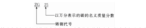 (2)以化學成分為主要驗收依據的鑄造碳鋼,這類鑄鋼在ZG后面接一組數字,是 以萬分表示的碳的名義質量分數。例如: